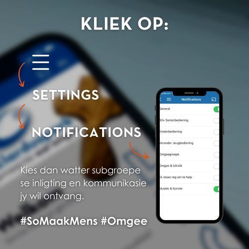 Die volgende instruksies sal jou help om jou "notifications" wat jy ontvang te bestuur. Jy kan self kies watter tipe kennisgewings jy van die gemeente af wil ontvang!